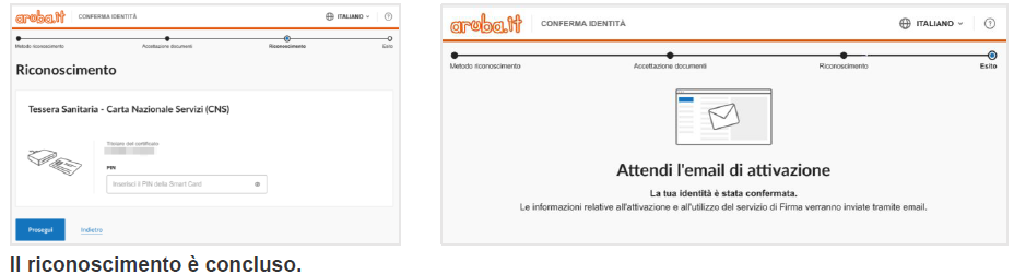 Il sistema proporrà allo step “Riconoscimento” un riepilogo di quanto necessario per procedere con tale metodo di identificazione, ovvero: