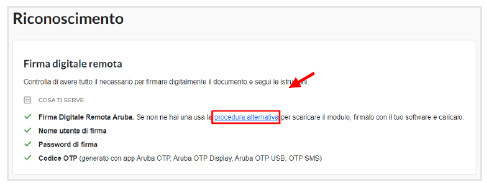 Riconoscimento con Firma Remota – Procedura alternativa