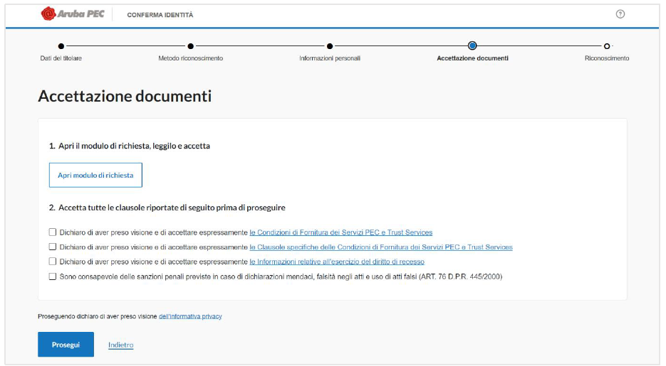 Cliccare su Prosegui per accedere all’ultimo step della procedura.